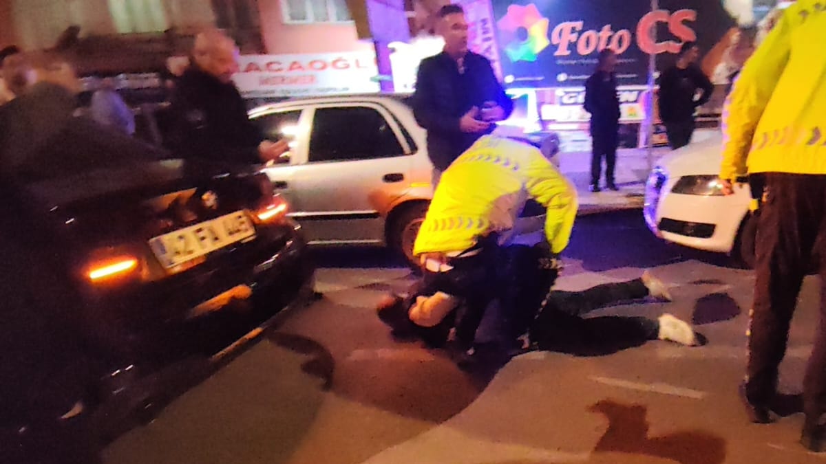 Polis ekipleri şüphelilerden kimlik istedi. Kimlik vermek istemeyen 3 kişiden Sait S., bu sırada kaza yerinde bulunan Trafik Tescil ve Denetleme Şube Müdürü Gürsoy Yalvaç’a tekme attı. Polis ekipleri biber gazı kullandığı 3 kişiyi etkisiz hale getirip, gözaltına aldı. Sürücü Serkan S.’nin yapılan alkol kontrolünde 2.60 promil alkollü olduğu ortaya çıktı. Trafik Tescil ve Denetleme Şube Müdürü Gürsoy Yalvaç, Aksaray Eğitim ve Araştırma Hastanesinden tedavi edildi.