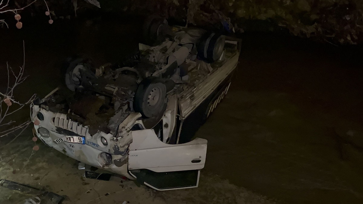 Savrulan kamyonet kaldırıma çıkıp, demir korkulukları aşarak 6 metre yükseklikten dereye düştü. Kazada sürücü Mustafa E., yaralandı.