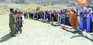 Başbakan Erdoğan pazar günü yaptığı il başkanları toplantısında terör olayını değerlendirirken, “Biz şu anda Eyüp sabrındayız” demişti. Doğru söylemiş. Hainlerin yaptıklarına gerçekten Eyüp sabrı gerekiyor. Çünkü, hemen her gün şehit haberi geliyor. BDP’liler PKK’lılarla kucaklaşıyor. Önceki gün de “Artık yeter. Bunu da mı görecektik” dedirten bir olay yaşandı. Bu fotoğraf Beytüşşebap ilçe merkezine 2 km. mesafedeki Kato Dağı’nda bulunan Laleş Yaylası’nda çekildi. Mehmetçiğin öldürdüğü 7 teröristin cesedi PKK’lılar tarafından ailelerine törenle teslim edildi. Teslim sırasında PKK’lılar alkış tutarken, teslim alan aileler de Apo lehine sloganlar attı. Daha sonra eli silahlı PKK’lılar yine dağa çıkarak izlerini kaybettirdi. Devlet ortada yoktu.Eyüp sabrı ne demek?