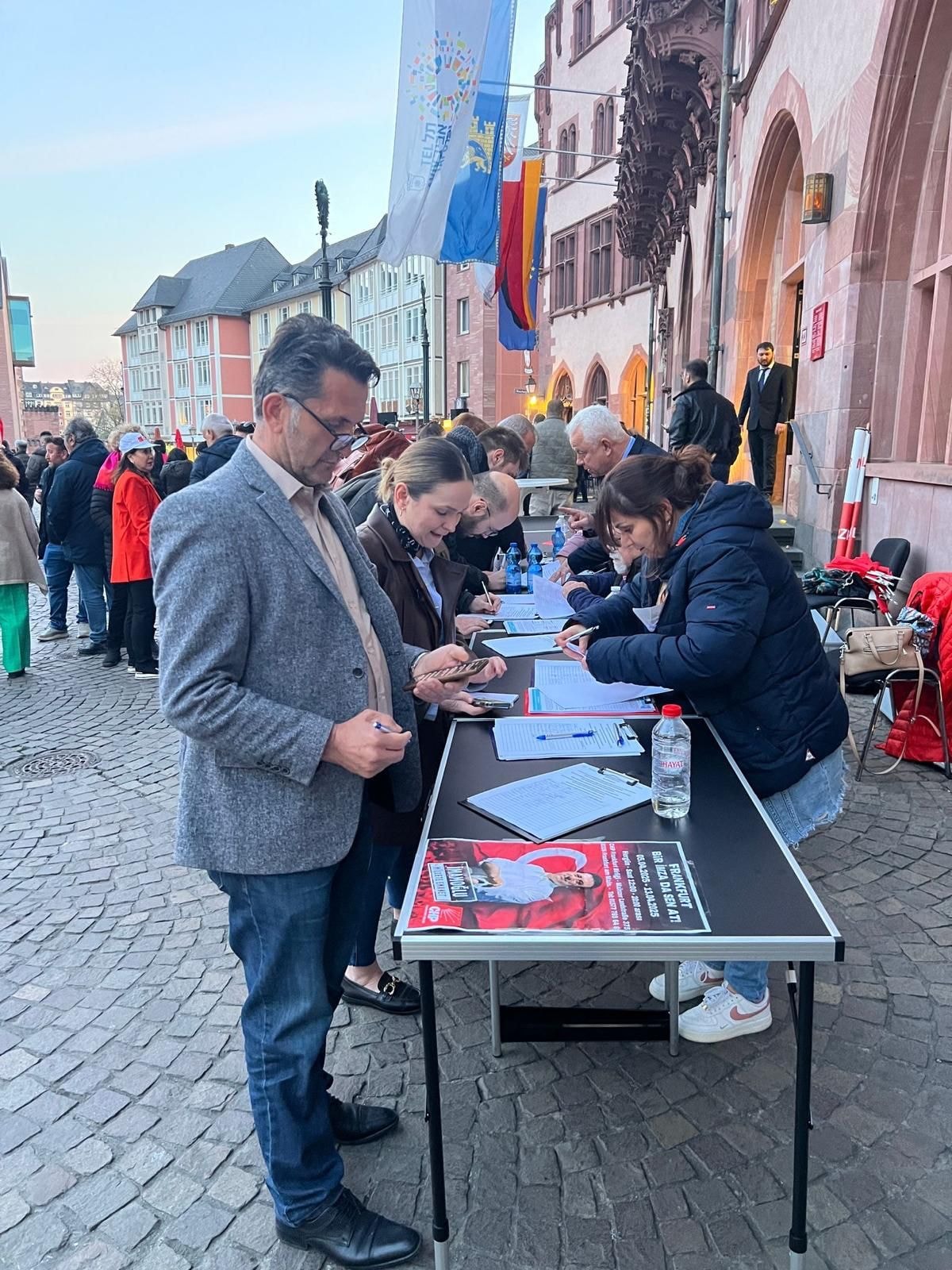 CHP’nin başlattığı kampanyada İmamoğlu için toplanan imza için kuyruklar oluştu. CHP Frankfurt Birliği’nin ilk imza kampanyası başarılı oldu ve yeniden imza toplanmaya devam ediliyor.