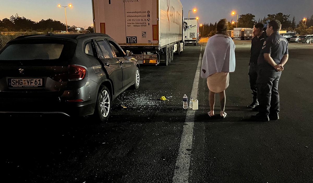 Aile, olayın hemen ardından acil çağrı hattını arayıp durumu jandarmaya bildirdi. Olay yerine gelen ekipler, camın buji parçası ile kırıldığını, ön iki lastiğin de kesici bir aletle patlatılmış olduğunu tespit etti.