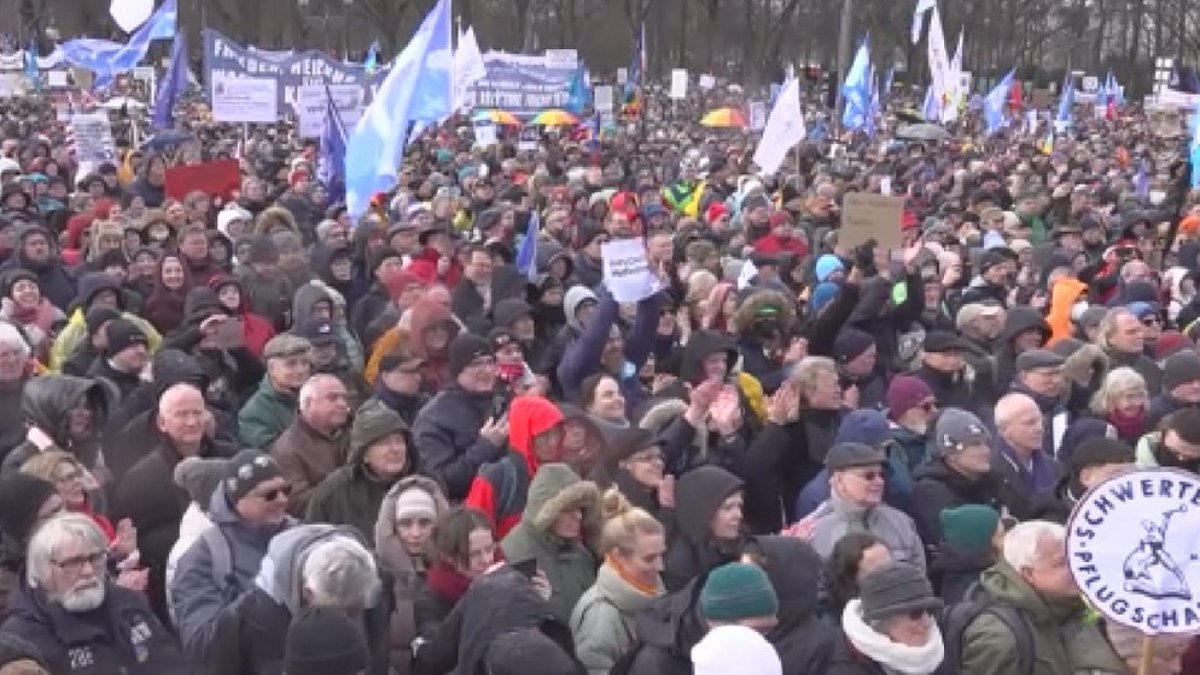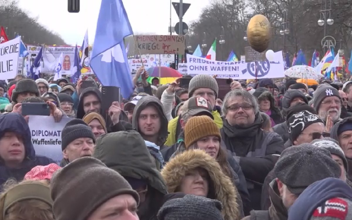 Tarihi Brandenburg Kapısı önünde Sol Parti Milletvekili Sahra Wagenknecht ve gazeteci-yazar Alice Schwarzer’in çağırısıyla toplanan binlerce kişi, Rusya ile barış müzakeresi yapılması ve Alman hükümetinin Ukrayna'ya daha fazla silah vermemesi çağrısında bulundu.