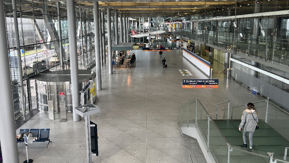 Düsseldorf Havalimanı'nda planlanan 391 kalkış ve inişten 264'ünün, Köln Bonn Havalimanı'nda da 100 uçuşun iptal edildiği bilgisi paylaşıldı. (AA)