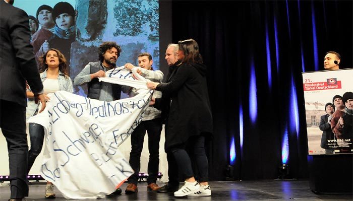 DHA'nın haberine göre; Kadir İnanır ödülünü Alman sinemasının ve televizyonlarının emektar ve ünlü sanatçısı Mario Adorf’’un elinden aldı. Festival Başkanı Adil Kaya ve festival yönetmeni Ayten Akyıldız’ın organizesindeki törende Türkiye Cumhuriyeti Başkonsolosu Yavuz Kül, Büyük şehir Belediye Başkanı Ulrich Maly, Kadir İnanır’ın 16 yıllık büyük aşkı Jülide Kural ve birçok özel davetli hazır bulundu. Başkonsolos Yavuz Kül ’ün konuşmasının hemen öncesi, bir grup protestocunun sahneye çıkıp, pankart açıp “Kürdistan’a özgürlük” şeklinde bağırması şaşkınlık yarattı