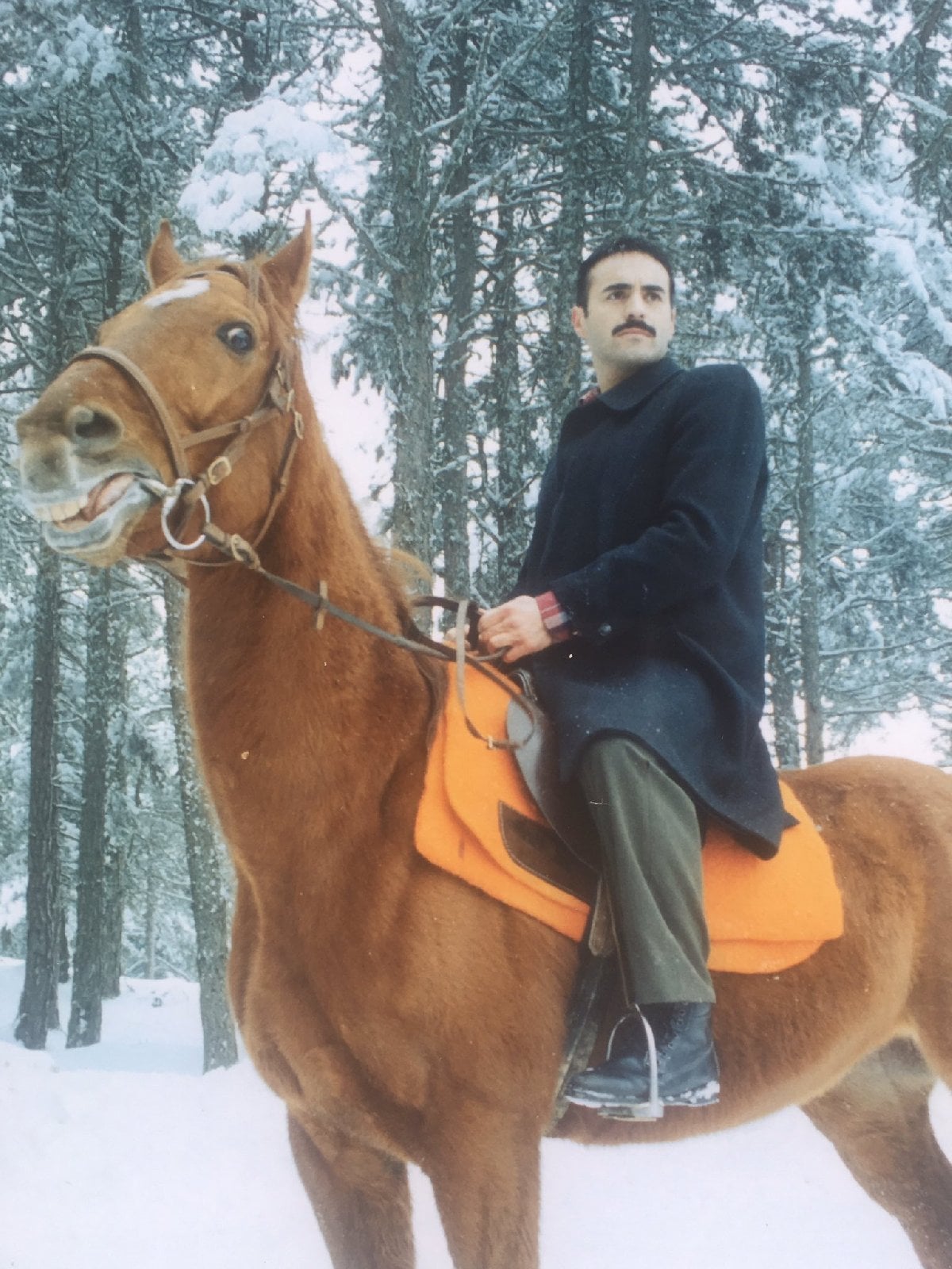 "Kınalı Kar adlı dizide Alper Kul’la birlikte oynadığımız bir sahne. Yıl 2001. Ben sonrasında dramalara devam ederken, Alper kafasındaki peruğu çıkarıp şansını komedilerde denedi. Yolu açık olsun, iyi insandır. Arpamı, yulafımı hiç eksik etmedi."