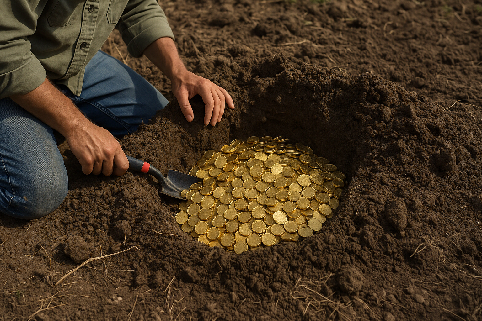 O gün çiftçi, sabahın erken saatlerinde tarlasının bir köşesinde kazı yaparken parlayan bir şey fark etti. Eğilip baktığında, 1856 tarihli yarım dolarlık bir sikke buldu. Birkaç adım ileride toprağı biraz daha kazdığında, bu kez altın bir 20 dolarlık sikke çıktı. Sonrasıysa tam anlamıyla bir rüya gibiydi. Yaklaşık bir saat içinde toprak, parıltılarla doldu. Sonunda çiftçi, önünde yatan şeyin Amerikan İç Savaşı döneminden kalma yüzlerce altın ve gümüş para olduğunun farkına vardı.