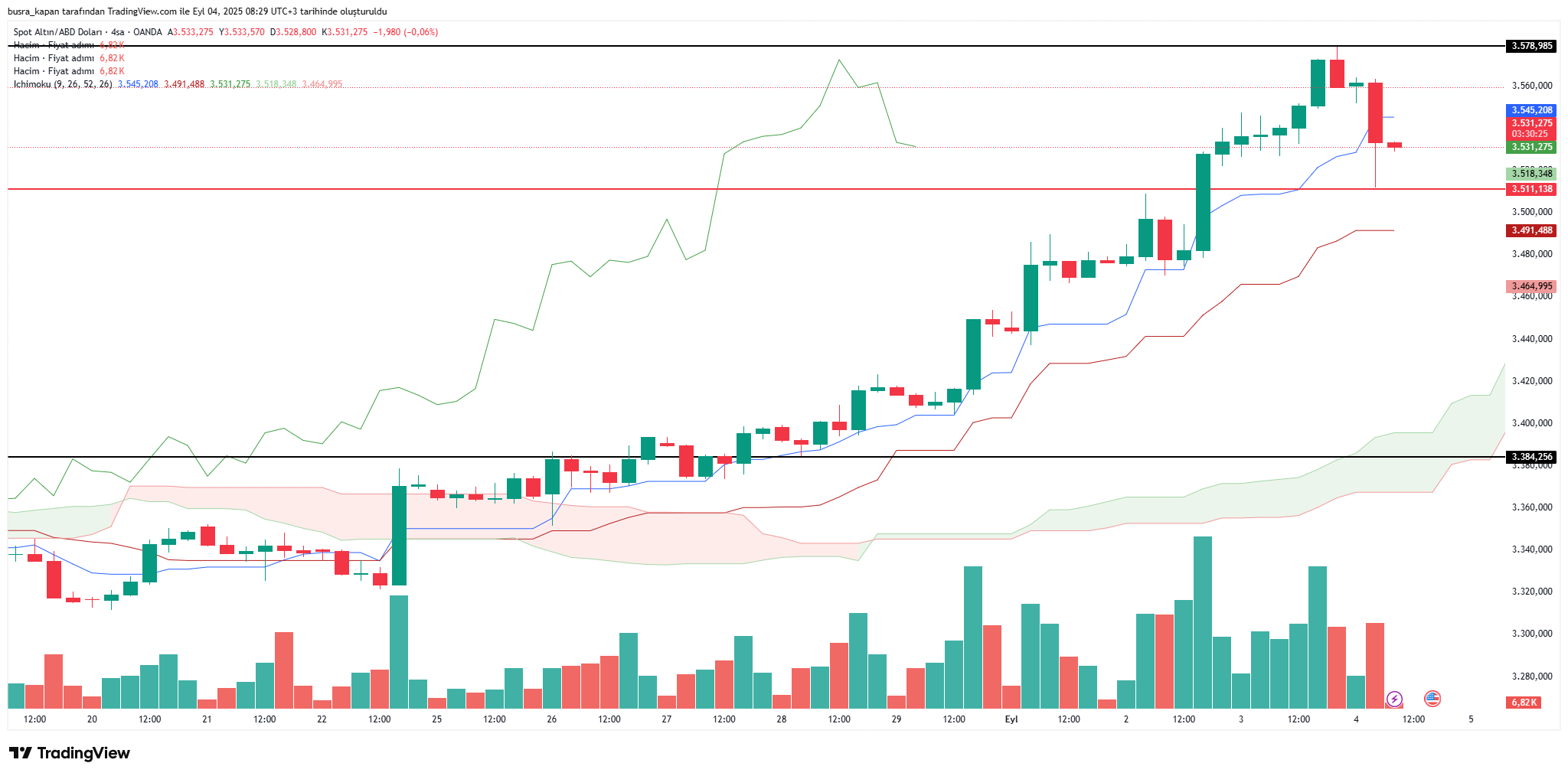 Yaşanan gelişmelerin etkisiyle dün 3 bin 578 dolara yükselerek rekor tazeleyen gram altın, bugün kazançlarının bir kısmını sildi. Dün gece seansında 3 bin 511 dolara gerileyen ons altın günü 3 bin 545 dolardan tamamladı. Yeni günde sabah seansında 08.28'de 3 529 dolarda bulunuyor.