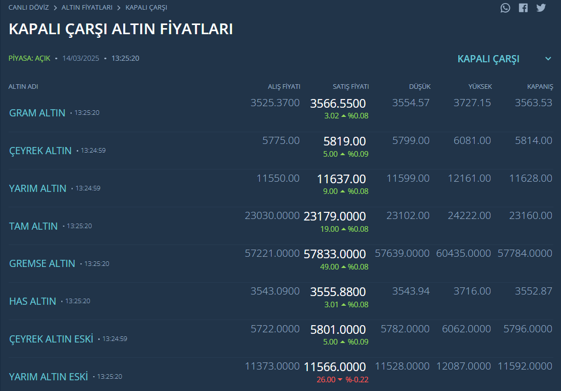 Kapalıçarşı’dan gelen son verilere göre gram altın 3 bin 559 TL seviyesine ulaşırken, çeyrek altın 5 bin 826 TL’den alıcı buluyor. Yarım altın ise 11 bin 569 TL’ye kadar yükseldi. Özellikle yatırımcıların gözdesi olan Ata altın, son 15 günde bin lira değer kazanarak 23 bin 768 TL seviyesine çıktı. Uzmanlar, küresel piyasalardaki belirsizliklerin altına olan talebi artırdığını belirtiyor.