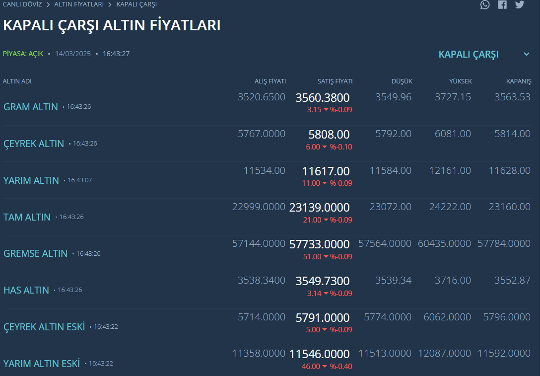 KAPALIÇARŞI'DA ALTIN FİYATLARI (SAAT 16.44)