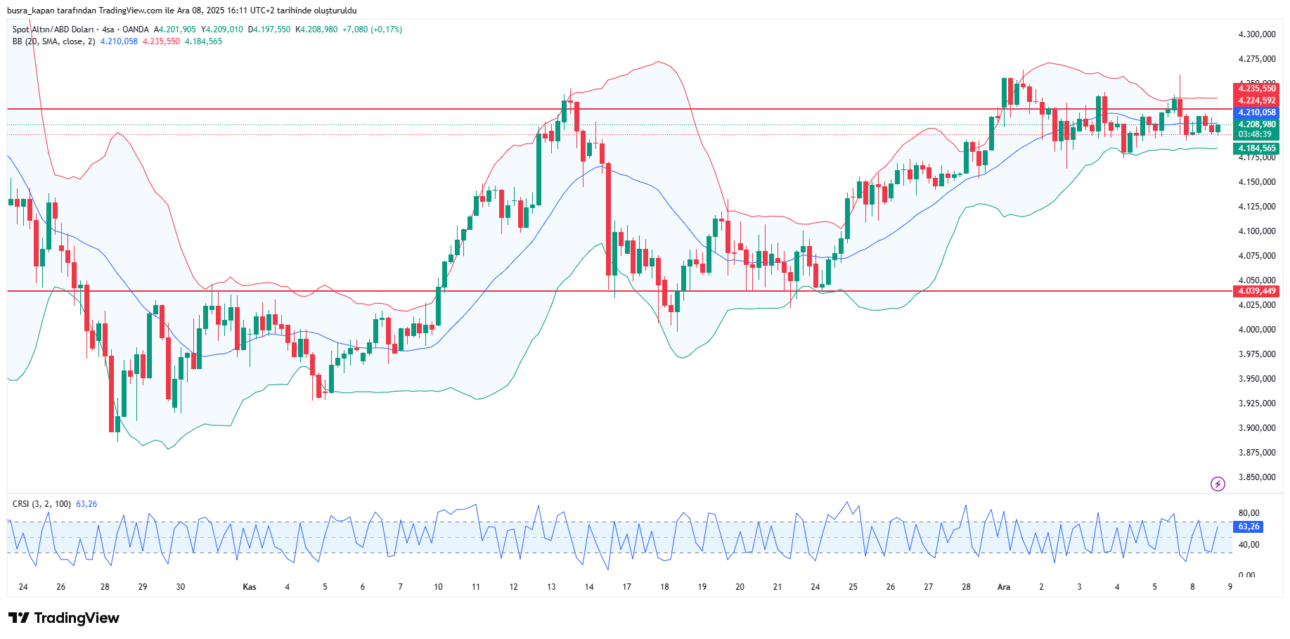 Altın fiyatları haftaya pozitif seyirde başladı. Haftanın ilk işlem gününde akşam seansına doğru 17.10'da 4 bin 208 dolarda bulunuyor.