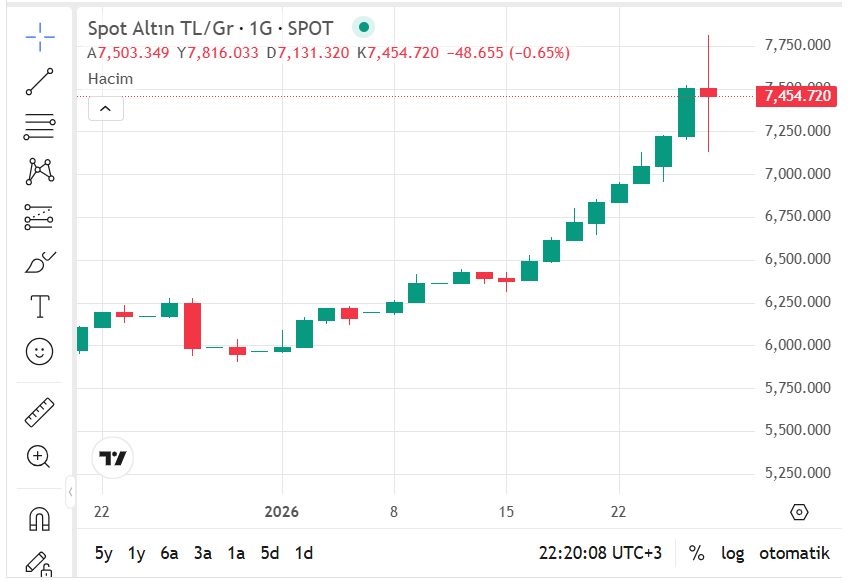 Spot altın, New York saati ile 11:27'de yüzde 2,5 düşüşle ons başına 5 bin 288 dolardan işlem gördü.
