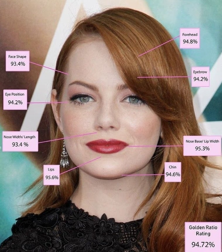 Estetik uzmanı Dr. Julian De Silva'nın açıkladığı sonuçlara göre, fiziksel mükemmellik için yüzün tüm unsurları ölçüldüğünde ilk sırada ABD'li oyuncu Emma Stone yer aldı.