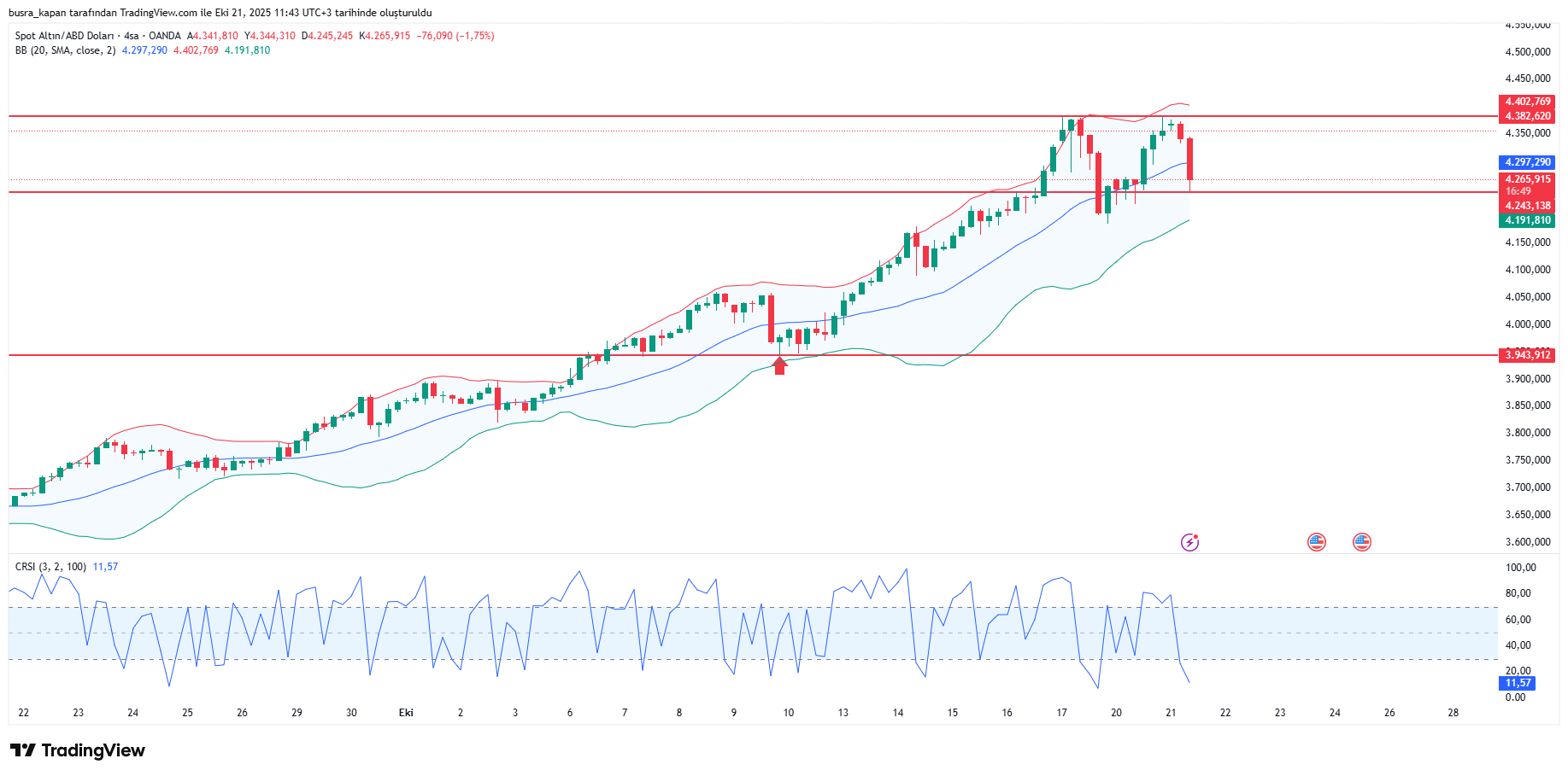 Waterer’a göre, “ABD enflasyon verisi beklentileri aşmadığı sürece, altındaki yükseliş trendi devam edebilir.” Ancak hükümetin kapanması nedeniyle Eylül ayı Tüketici Fiyat Endeksi (TÜFE) verisinin açıklanması ertelendi. Verinin yıllık bazda yüzde 3,1 artış göstermesi bekleniyor.