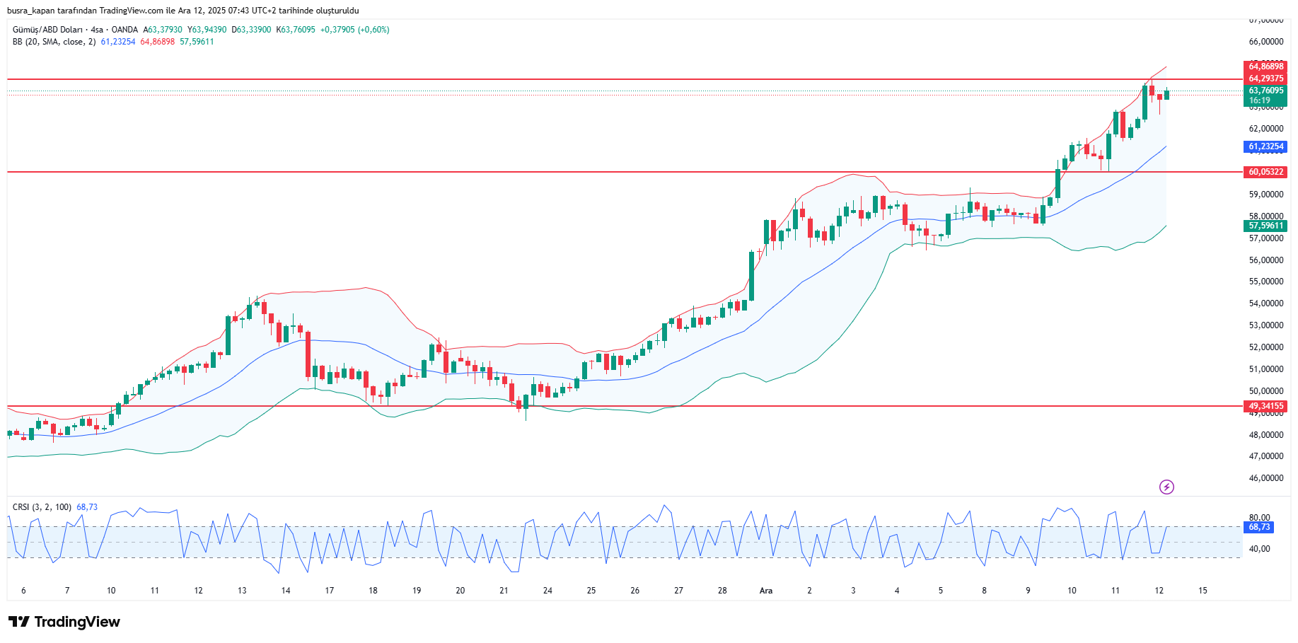 Yaşanan gelişmelerin etkisiyle, gümüş fiyatları son günlerde rekor üstüne rekor tazeledi. Gümüş, ABD Merkez Bankası'nın (Fed) faiz indirimine gitmesinin ardından Perşembe günü yeni bir rekor kırdı. Spot gümüş ons başına yüzde 4'e yakın artış göstererek 64,87 dolara kadar ulaştı.