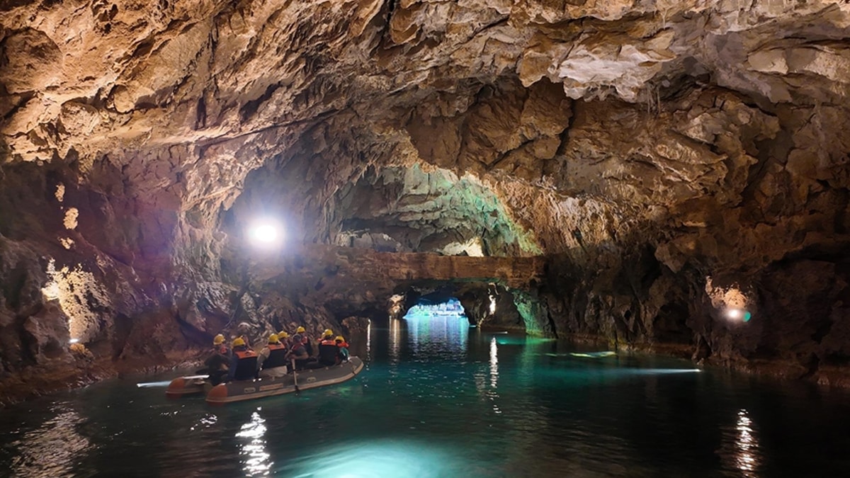 Yıl boyu ziyarete açık olan mağarada ziyaretçiler, rehber eşliğinde botlarla yer altı gölünü geziyor.