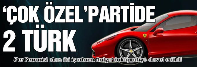 Ferrari'nin İtalya düzenlediği ve 'en az 5 Ferrari'ye sahip olma' başlıca şartını koyduğu özel partisine davet edilen Türkün Holding’in patronu Erol Türkün ve gayrimenkulcü Mehmet Selim Dalaman'ın bu araçlara sahip olması bekleniyor. Ferrari'nin düzenlediği bu özel partiye katılabilmek için sadece 5 Ferrari'ye sahip olmak yetmiyor. Ülkenizde statü sahibi olmanızın yanı sıra, yabancı dil bilmeniz de gerekli.