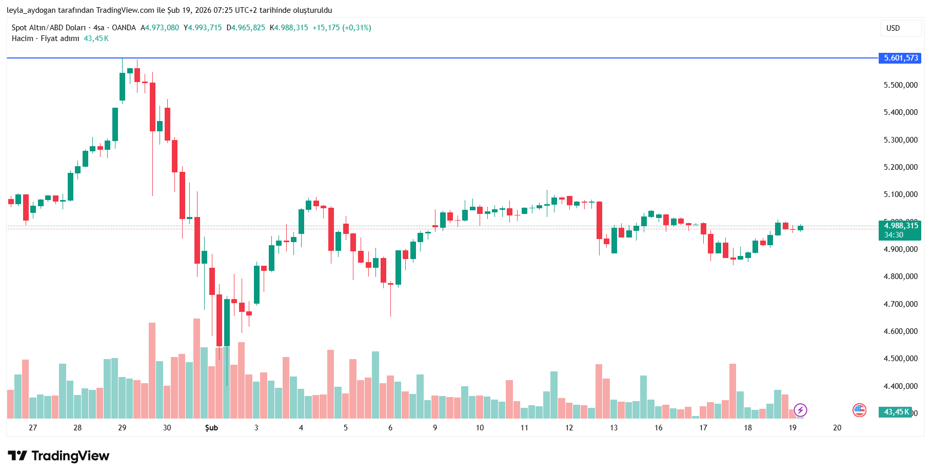 Önceki seansta yüzde 2’nin üzerinde yükselen altın, Perşembe günü düşük hacimli işlemlerde geriledi. Spot altın yüzde 0,2 düşüşle ons başına 4.968,10 dolara indi. Nisan vadeli ABD altın kontratları ise yüzde 0,4 kayıpla 4.987,60 dolardan işlem gördü.