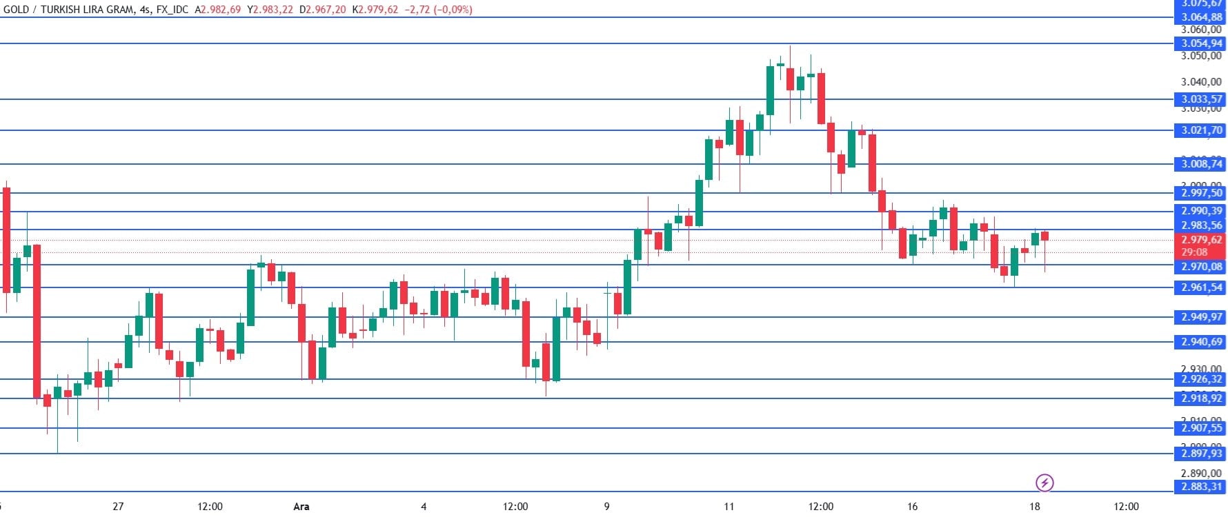 Dünü 2 bin 961 lira ile 2 bin 988 lira aralığında geçiren gram altın, günü 2 bin 975 liradan tamamladı. Yeni günde ise sabah seansında aynı saat diliminde 2 bin 979 lirada bulunuyor.
