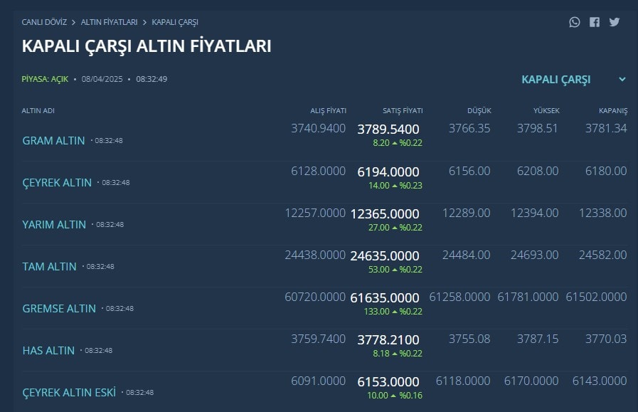 KAPALI ÇARŞI ALTIN FİYATLARI