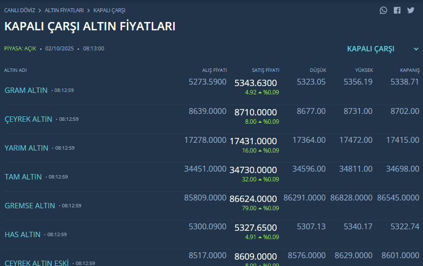 KAPALIÇARŞI ALTIN FİYATLARI