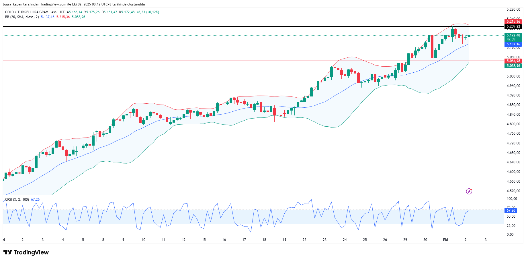 Ons altındaki geri çekilme ve dolar/TL kurundaki kısmi yükselişlerin etkisiyle, yatay bir seyir sergiliyor. Gram altın resmi rakamlarda dün 5 bin 215 lirayı görerek rekor kırdıktan sonra 08.10'da 5 bin 171 lirada bulunuyor.