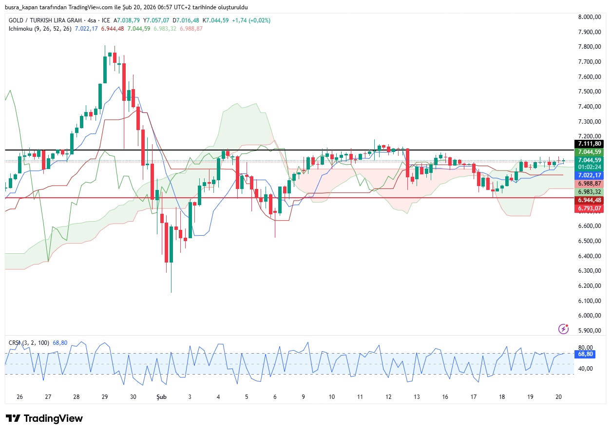 Gram altın, ons altında görülen sakin seyrin etkisiyle yatay bir seyir sergiliyor. Gram altın haftanın son işlem gününde 07.56'da 7 bin 44 lirada hareketleniyor.