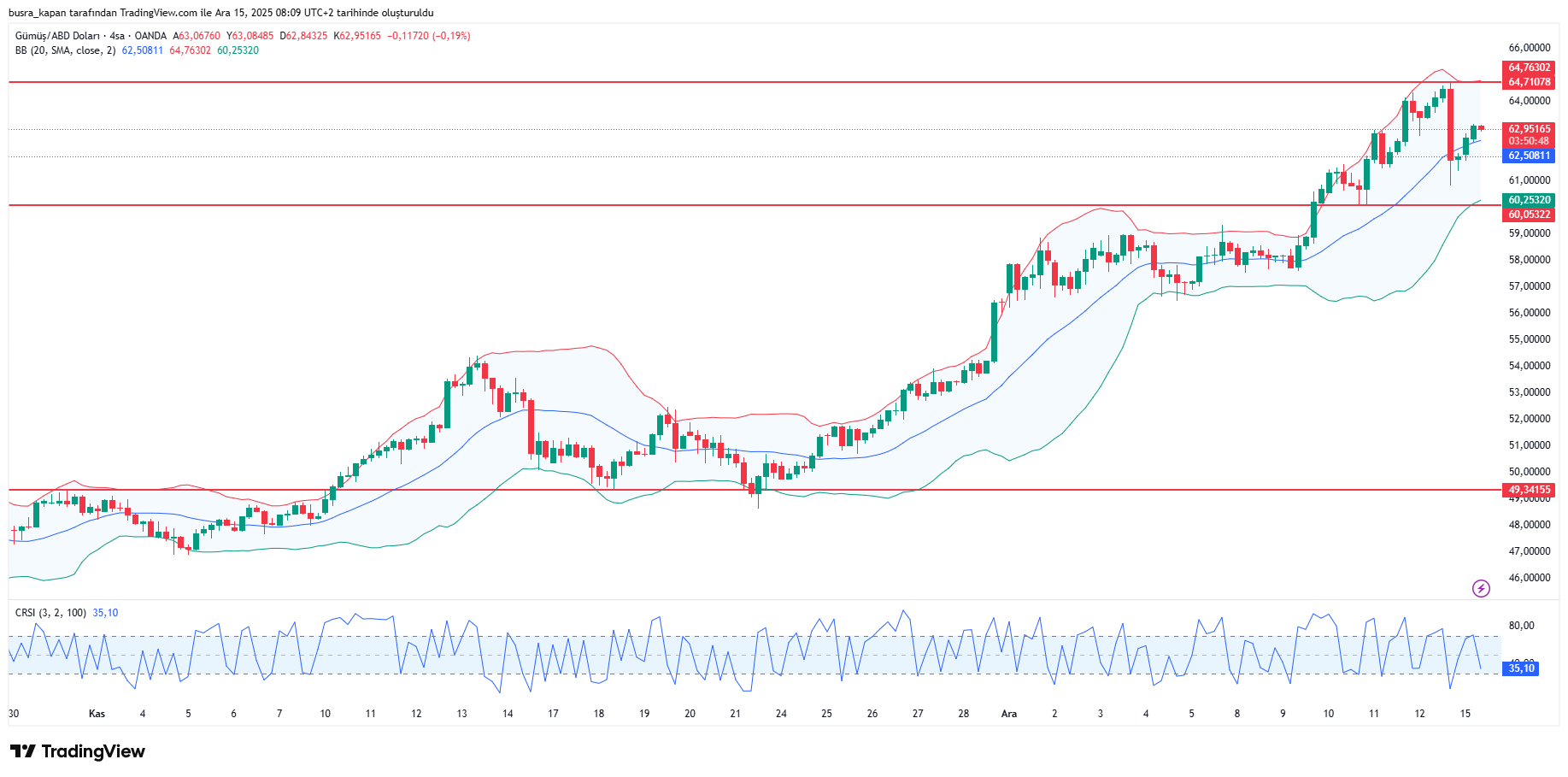 Yaşanan gelişmelerin etkisiyle ons gümüş, yeni haftanın ilk işlem gününde sabah seansında 09.09'da 62,94 dolar seviyesinde bulunuyor. Ons gümüş geçtiğimiz hafta 64,76 dolar seviyesine yükselerek rekor kırmıştı.