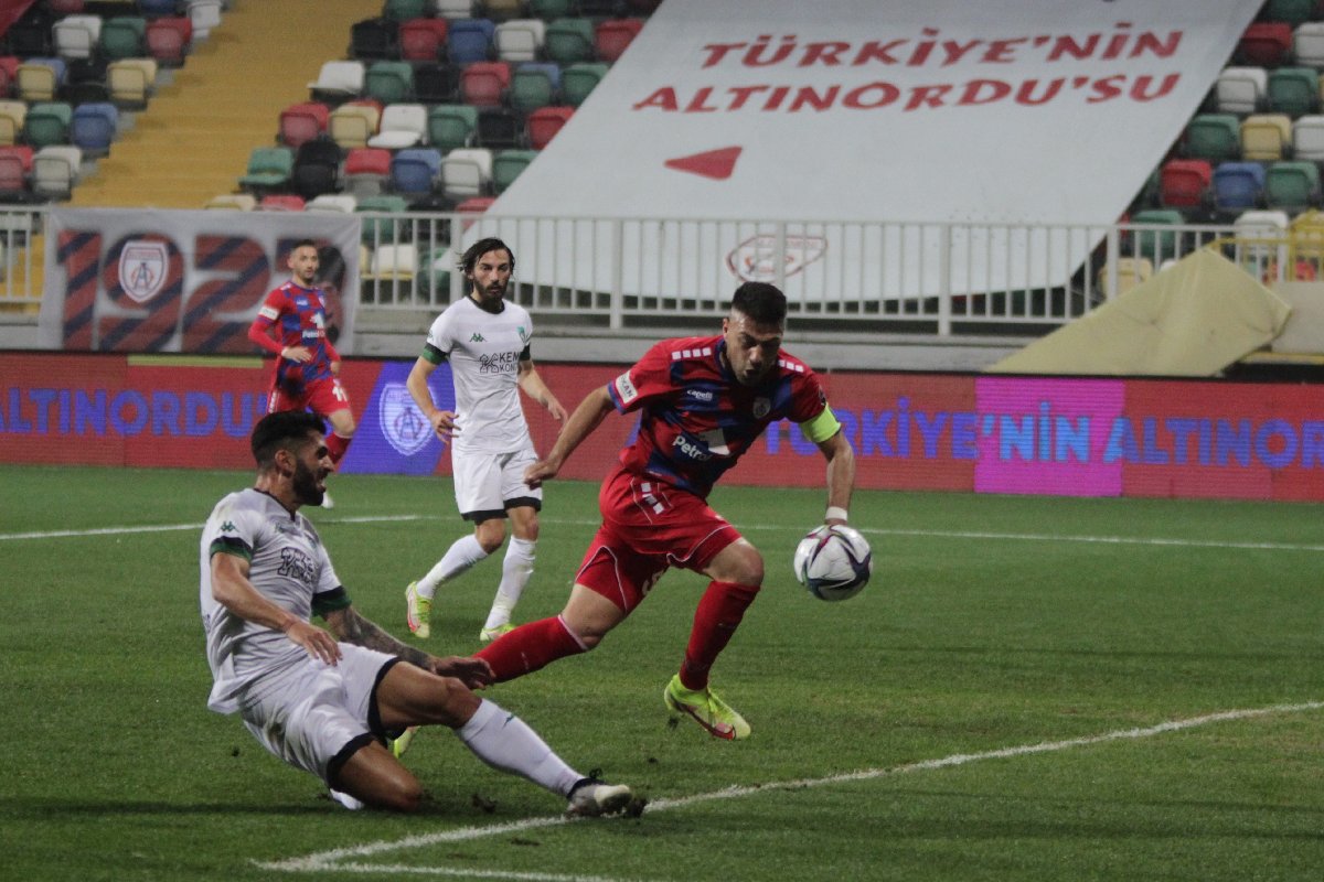 - 32' Orta alandan gelişen Altınordu atağında Metahan’ın ara pasıyla ceza sahası içi sağ çaprazından kaleciyle karşı karşıya kalan Burak, şutunu atsa da kaleci Korcan’ı geçemedi.