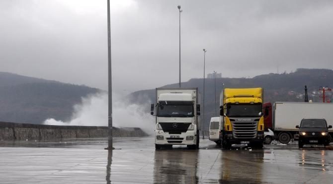 BARTIN'ın Amasra İlçesi'nde şiddetli rüzgar nedeniyle denizde dev dalgalar oluştu.