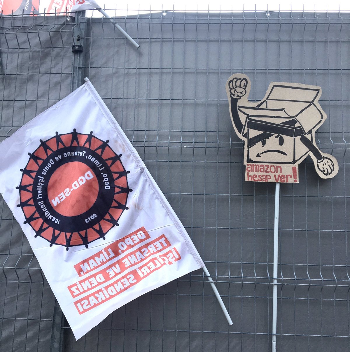 DGD-SEN'den yapılan açıklamada, "Meslek hastalıkları, sakatlık, kölelik koşullarında çalışmak zorunda bırakılmak kaderimiz değil. Biz dur dersek, bir araya gelirsek değiştirebiliriz. Ucuza, güvencesiz ve sömürü altında çalışmaya karşı, Amazon patronlarına karşı DGD-Sen burada!" ifadelerine yer verildi.