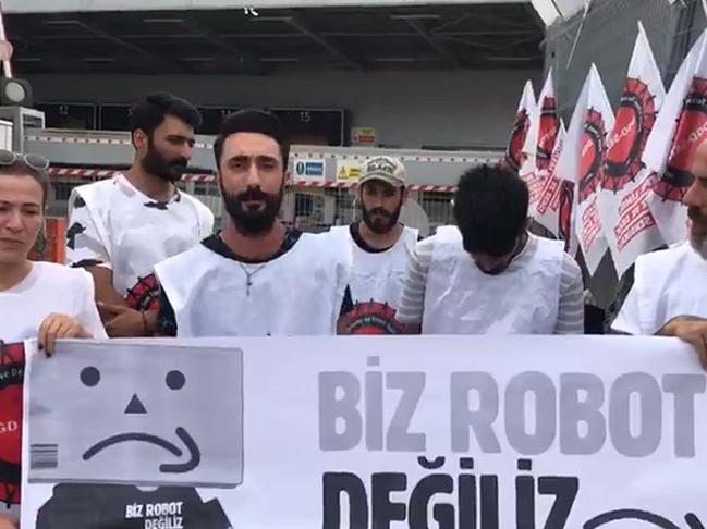 Depo, Liman, Tersane ve Deniz İşçileri Sendikası (DGD-SEN) üyesi Amazon/Ceva Lojistik depo işçileri, şirketin Gebze’deki merkezi önünde eylem düzenledi. Eylemciler “Biz robot değiliz” pankartıyla birlikte açıklama yaptı.