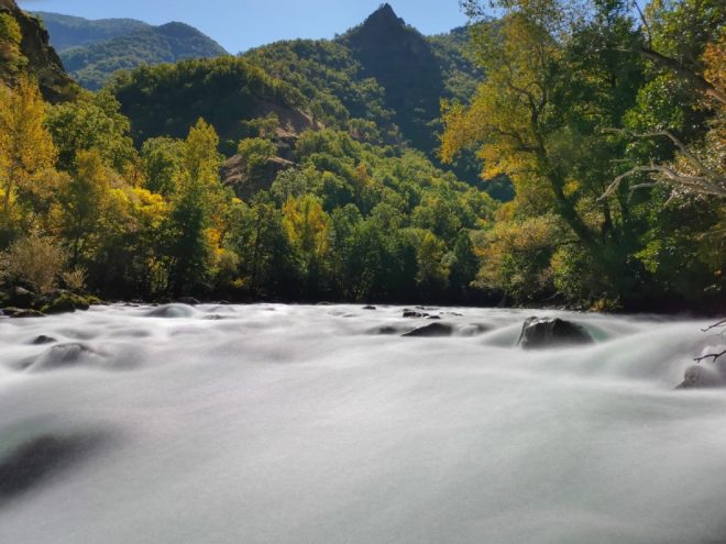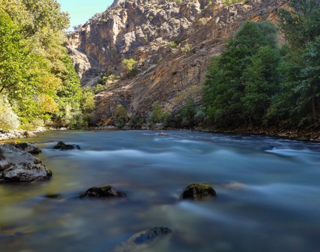 Ovacık ilçesine 10 kilometre uzakta bulunan gözelerden çıkan ve onlarca derenin suyuyla beslenen Munzur çayı, sonbaharın renkleriyle birleşerek doyumsuz bir atmosfer oluşturuyor.