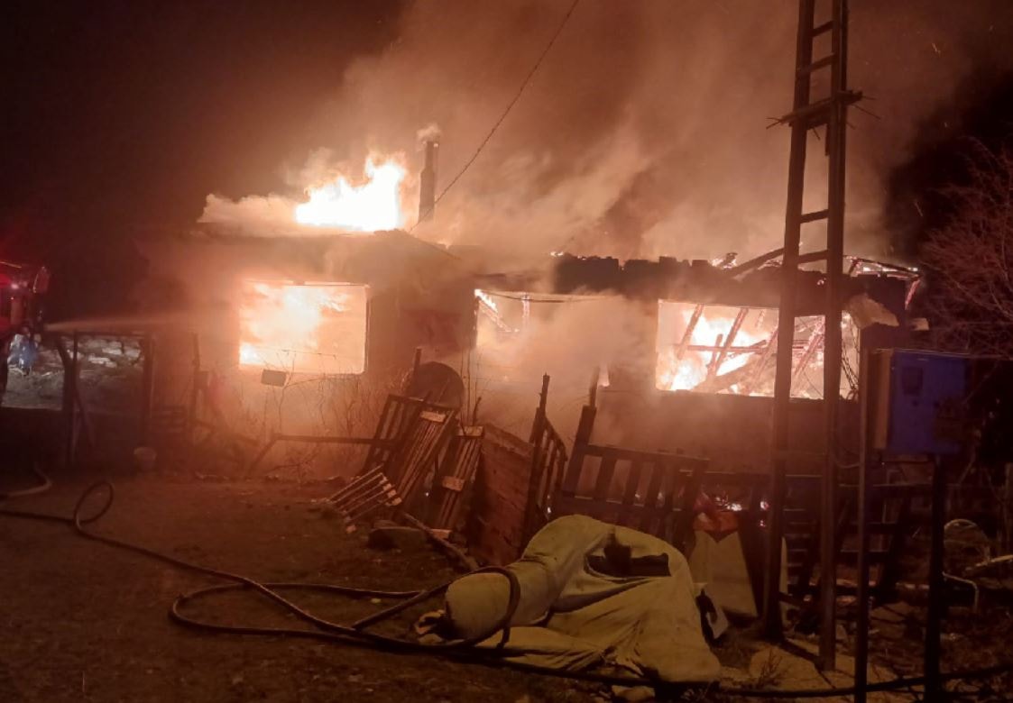 Eskişehir'in Odunpazarı ilçesi Aşağı Çağlan Mahallesi'nde D.D.'ye ait ahırda gece yarısı yangın çıktı. Kısa sürede yayılan alevler, yanındaki eve de sıçradı.,