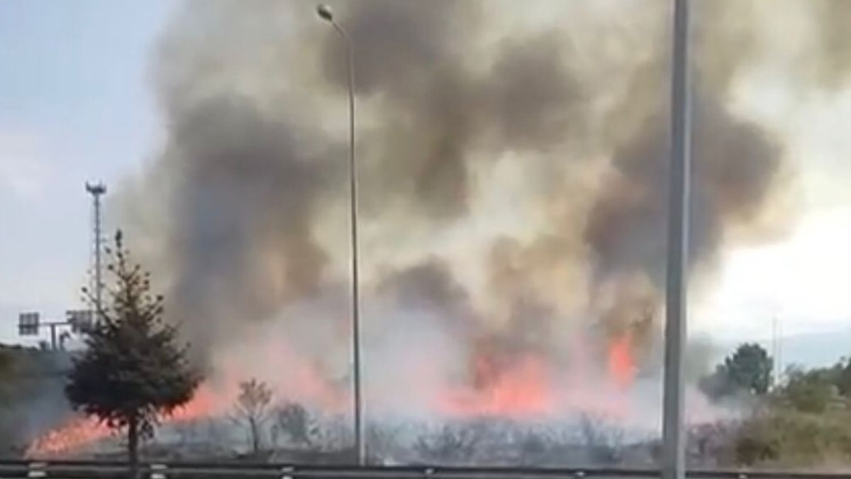 Düzce'de Anadolu Otoyolu kenarında çıkan ot yangını, itfaiye tarafından söndürüldü.