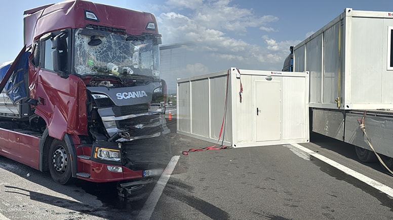 Tırdan yola düşen konteynere çarpmamak için fren yapan Eynur Y'nin kullandığı tıra ise Kemal D. kontrolündeki tır çarptı.