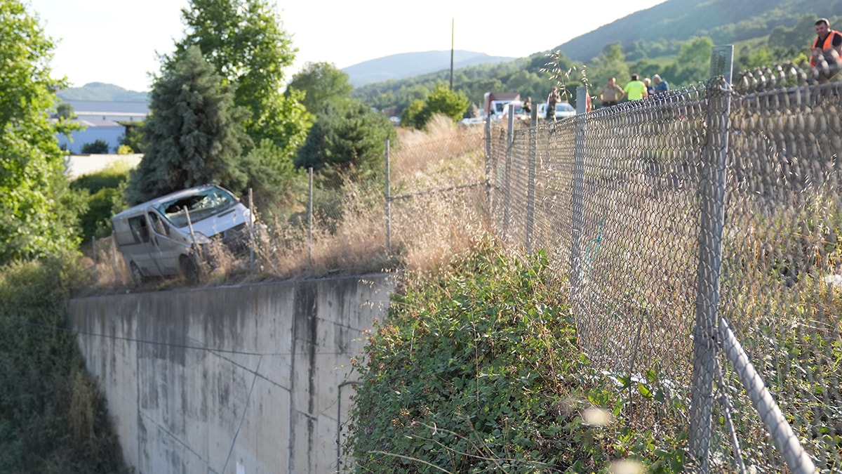Savrulan araç bariyeri aşarak yaklaşık 30 metre şarampole devrildi.