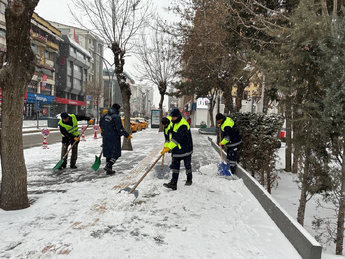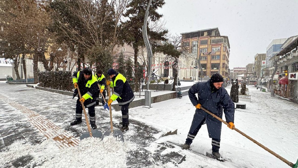İpekyolu Belediyesi ekipleri de beyaza bürünen ilçede, cadde ve kaldırımların temizlenmesi için çalışma başlattı.