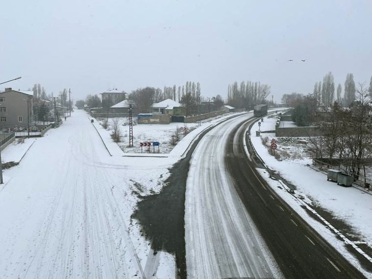 Ağrı'da da sabah saatlerinde etkili olan kar yağışı kenti beyaza bürüdü.