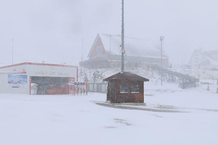Kayak merkezinde tesislerin bulunduğu 2 bin 200 rakımdaki Tekir bölgesi, Hacılar Kapı ve Develi Kapı'da gece başlayan kar yağışı devam ediyor.