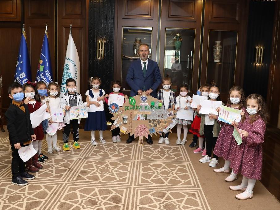 Ziyaretin ardından çocuklar, kendi yaptıkları resimleri ve üzerinde Başkan Aktaş’ın fotoğrafı ve Bursa’nın değerlerinin bulunduğu Çınar Ağacı maketini Başkan Aktaş’a hediye etti. Başkan Aktaş da günün anısına minik öğrencilere çeşitli hediyeler verdi. İHA