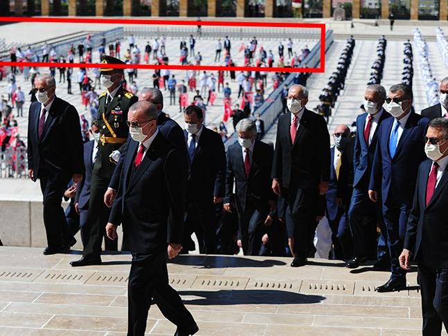 Ziyaretçilere tören süresince kapatılan Anıtkabir'de bir grubun Recep Tayyip Erdoğan sloganları atması dikkat çekti.