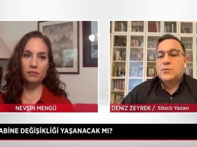 Ankara kulislerini en iyi bilen isimlerden Sözcü yazarı Deniz Zeyrek, Sözcü TV yayınında Nevşin Mengü’nün sorularını yanıtladı. Zeyrek, koridorlarda sıklıkla dillendirilen ‘kabine değişikliği’ konusunda çarpıcı yorumlarda bulundu. Zeyrek “Haziran ayı içerisinde kabine değişikliği olması sürpriz olmaz” dedi.
