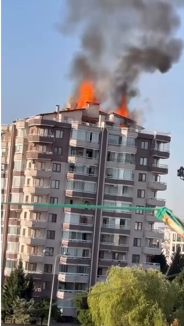 Yangın Etimesgut ilçesine bağlı Devler Mahallesi'nde bulunan 12 katlı bir binanın çatısında saat 18.00 sıralarında yangın çıktı.