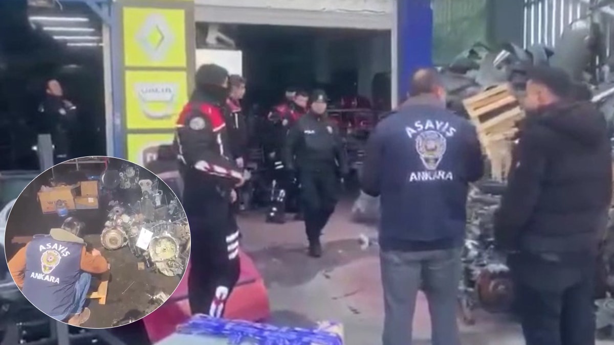 Asayiş Şube Müdürlüğü ekipleri, Ankara Oto Sanayi'de bulunan iki oto yedek parça dükkanında arama yaptı.