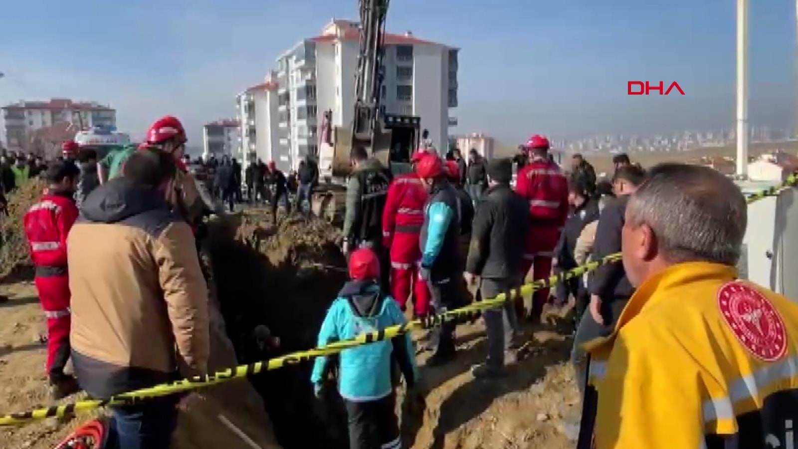 Ankara'nın Polatlı ilçesinde yapımı yeni biten binaya yapılan kanalizasyon inşaatında göçük meydana geldi.