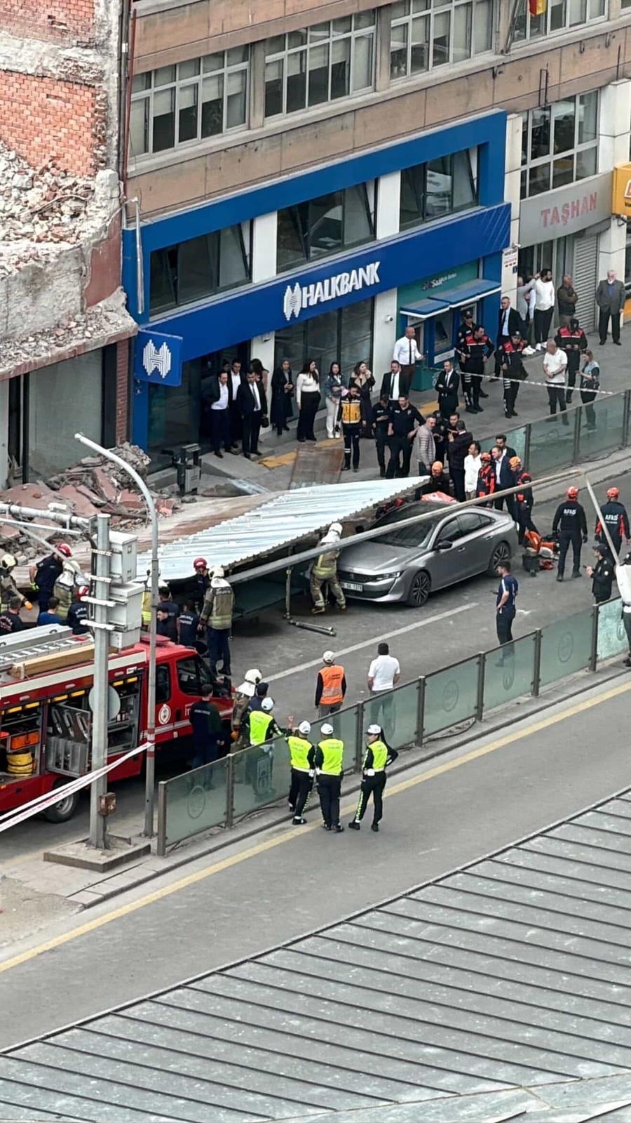 Ankara Ulus’ta yıkım çalışması sırasında bina önündeki platform caddeye devrildi. İlk belirlemelere göre bir otomobil platform altında kaldı.