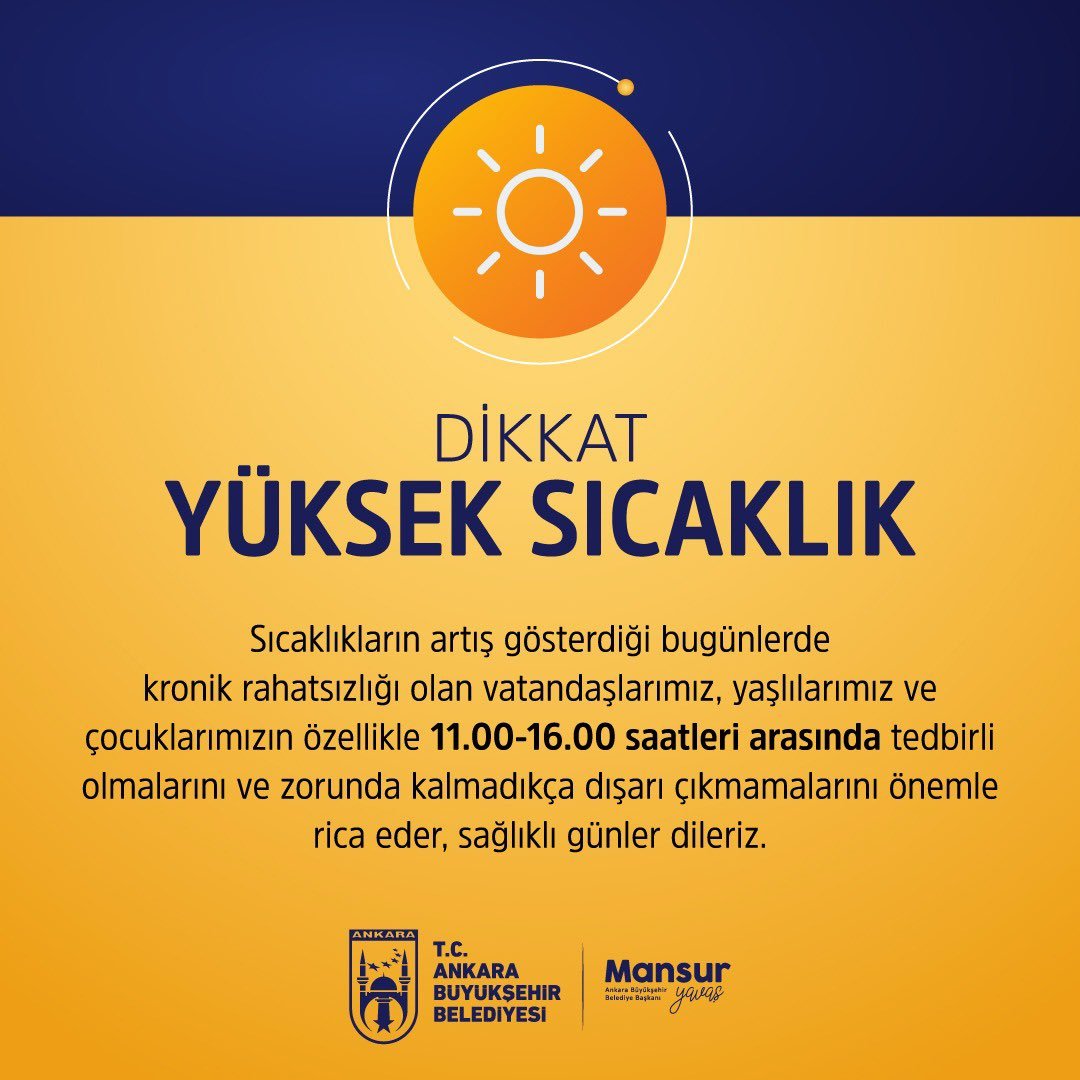 Türkiye sıcak hava dalgasının etkisindeyken Ankara Büyükşehir Belediyesinden yurttaşlara uyarı geldi.