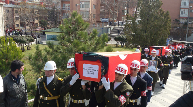 Cuma namazının ardından her bir şehit için ayrı cenaze namazı kılındı. Şehitler askeri cenaze araçlarıyla uğurlanırken, şehit yakınlarından birinin kızı 'Baba, gitme. Babamı götürmeyin' diye gözyaşı dökerek feryat ederken, yine bazı şehit yakınları, 'Aşkım cennet bahçelerinde dolaş, sen merak etme', 'Yavrum, kuzum, aslanım, yiğidim', 'Aşkım gözün arkada kalmasın' ve 'Anan sana kurban olsun', diyerek gözyaşı döktü. Geniş güvenlik tedbirlerinin alındığı törende, Başbakan Davutoğlu ve diğer törene katılanlar şehit ailelerine taziyelerini iletti. DHA