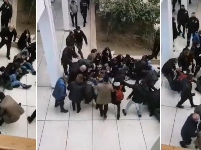 Çok sayıda öğrencinin gözaltına alındığı olayda, öğrencilerin sert müdahale ve ters kelepçeyle gözaltına alındığı anlar görüntülere yansıdı.