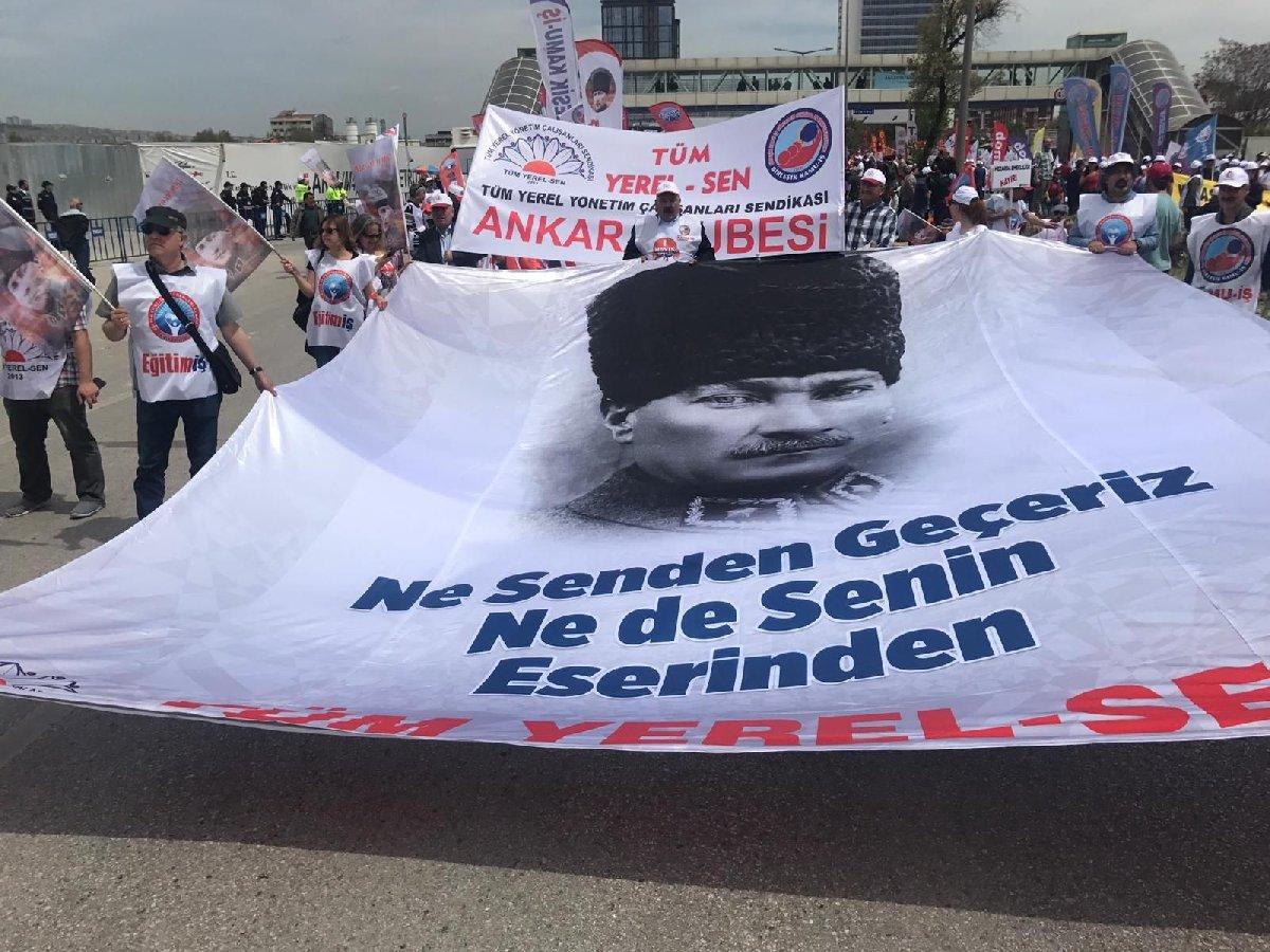 Başkent Ankara'da 1 Mayıs kutlamalarının durağı Anadolu Meydanı oldu. Alana gelen gruplar polis korteji eşliğinde yürürken altı sendikaya bağlı üyeler alana geldi.